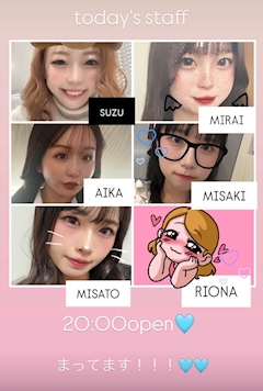 こんばんは🩵 みさとです🩵🩵 今日の出勤!! 新人ちゃん2人🩵🩵みさきちは久しぶりだ〜🎀🎀 りおなちゃんは3.4回かな?会ってるけど毎回おもろい🩵🤣 みらいちゃんだけほんまに久しぶりすぎるかも🥹🥹🥹 あってるんかな?!バタバタしてたかべろべろで話せてない?!🥹🥹笑笑 今日も騒がしメンバーです🩵🩵 水曜出勤久々な気がする🫨🫨🫨🩵 まってます〜🩵🩵
