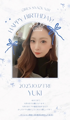 こんにちは🌞😃スナックニールのゆうです🤞🏻🤞🏻🤞🏻 今月はなんと!たくさんのお誕生日さんがいてます✨ ゆきさんみらいちゃんきらちゃんりおなちゃん みーんな10月にお誕生日👏👏👏 そして明日17日はゆきさんのお誕生日会なのです‼️ それはくるしか‼️私もたくさんお祝いさせてもらいますよー✨ みらいちゃんも限定オリシャン用意してるみたい!!めっちゃピンクでとてもプリティやった🥺 きらちゃんはお酒解禁✨沢山飲ませて潰そ!!!きらちゃんにはミニシャンパンが用意されてるみたい!とても素敵なお値段なので開けてきらちゃんと仲良くなるチャンス👍 明日のゆきさんのお誕生日会は珍しくゆきさんがラストまでいてくれるみたいなので沢山飲んで大暴れするゆきさん初めて見れるかも…って結構楽しみ!! みんなニール集合だよー!!!
