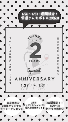 こんばんは🖤 みさとです🖤🖤 この前のテキ🖤笑 載せるの忘れてた😌😌笑 最初の一発目は写真撮ったのにそのあとなーんにも撮ってない🥃w 1月ももうすぐ半分、、はやー!笑笑 1/29.30.31は周年イベントです🖤 26日からは常連さんもボトル20%OFFです!!! 去年もすんごかった!去年仕事終わりに行ったら飲んでない人みつけたー!!!!てなってすんごい飲んだ😂😂いきなりの追い上げ✊✊✊ 今年は2周年🖤よろしくお願いします🥺✨✨